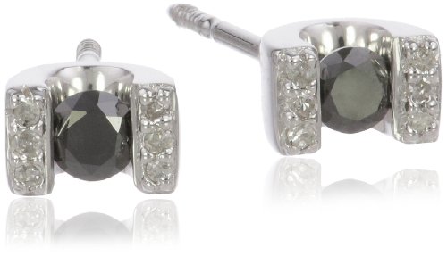 10k White Gold 1/4 CTTW Black and White Diamond Stud Earrings