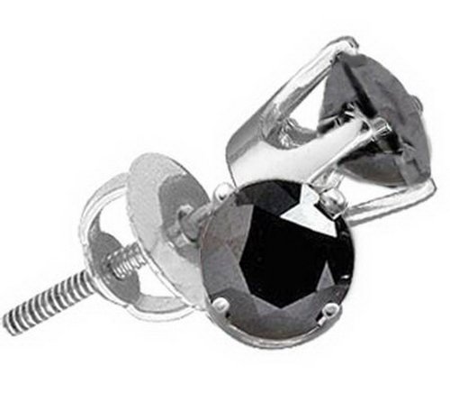 10K White Gold 3.0CT Black Diamond Round Studs