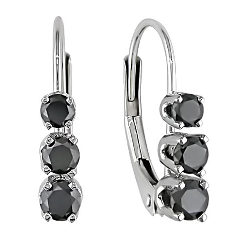 Prong set with 6 round black diamonds totaling 1/2 ctw, these 3-stone earrings are secured with lever backs.