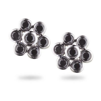» 1.70 Cts Black Diamond Flower Earrings in 14K White Gold