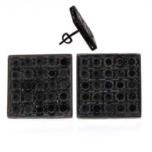 - 14k White Gold Square Black Diamond Earrings Studs...