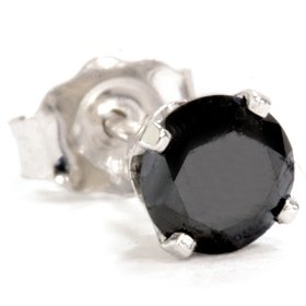 This popular single stud earring features one round brilliant cut genuine black color enhanced natural diamond. The diamond is prong set in solid white gold, and secured by a white gold push back.
