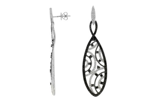 Ladies Dimaond & Black Diamond Earing in 14K White Gold (TCW 2.10).