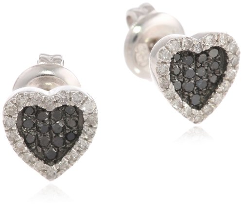 Sterling Silver 1/3Cttw Black and White Diamond Heart Stud Earrings