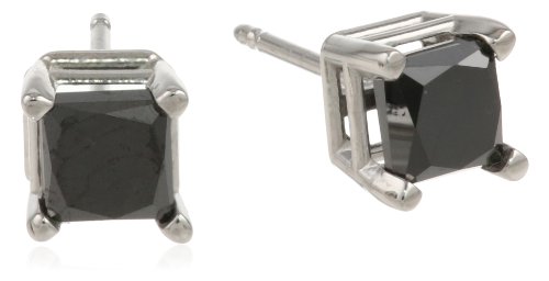 » 14k White Gold Princess-Cut Black Diamond Stud Earrings (1.50 cttw)