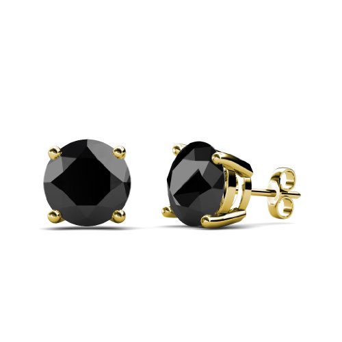 HOT PRODUCT TODAY3/4 (0.71-0.80) Cts of 3.50-4.00 mm AA Round Black Diamond Stud Earrings in 14K Yellow Gold 3/4 (0.71-0.80) Cts of 3.50-4.0...