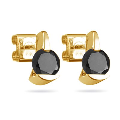 - 3/4 CT Black Diamond Stud Earrings 14k Yellow Gold
