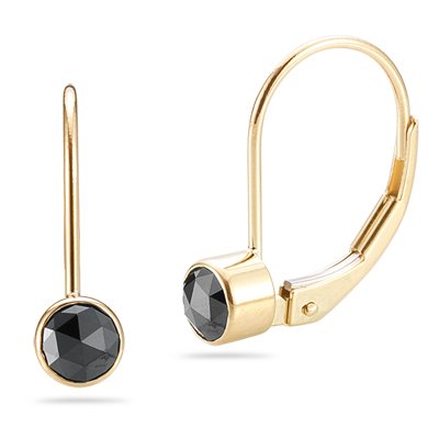 » 0.56 Cts of 3.75 mm AAA Round Rose Cut Black Diamond Earrings in 14K Yellow Gold with Lever Backs