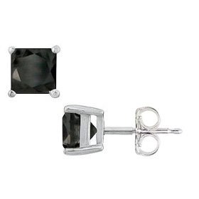 » 1.00cttw Natural Treated Princess Shape Black Diamond Stud Earrings in 14K White Gold.