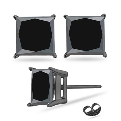 RECOMMENDED TODAY3.00cttw Natural Treated Princess Shape Black Diamond Stud Earrings in 14K White Gold. 3.00cttw Natural Treated Princess Sh...
