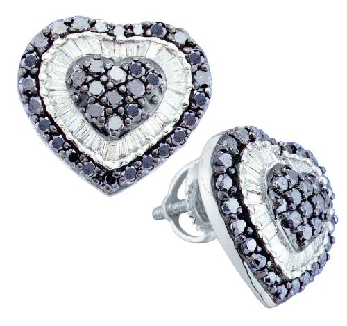 SPECIAL OFFERS14K White Gold 1.50CT Black Diamond Heart Earrings