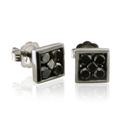 - 10k White Gold Black Rhodium Square Black Diamond ...