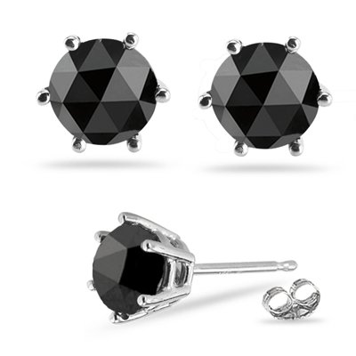 These attractive stud earrings exhibit a round rose-cut Black Diamond solitaire each six prongs set in 18K White Gold. Approximate Diamond Weight: 2.48 Carats. A trendy fashion accessory for daily use. METAL:18K Gold,ACTUAL METAL:14K White Gold,RHODIUM:Yes,BACKING:Push Backs,NUMBER OF DIAMONDS:2,SHAPE:Round Rose Cut,AVERAGE COLOR:Black,AVERAGE QUALITY:AAA,MINIMUM CARAT TOTAL WEIGHT:2.48,SETTING STYLE:Prong Setting,DIMENSIONS:6.59-6.88 mm,COLOR:Black {DIAMOND APPRAISAL INCLUDED}