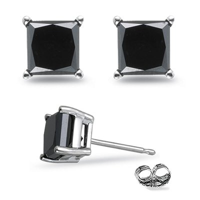 RECOMMENDED TODAY3.00cttw Natural Treated Princess Shape Black Diamond Stud Earrings in 14K White Gold. 3.00cttw Natural Treated Princess Sh...