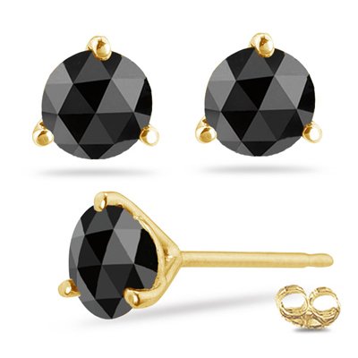 These enticing stud earrings glitter a round rose-cut Black Diamond solitaire each three prong set in 14K Yellow Gold. Approximate Diamond Weight: 0.48 Carat. A simple yet elegant design just for you. ,METAL:14K Gold,ACTUAL METAL:14K Yellow Gold,BACKING:Screw Backs,NUMBER OF DIAMONDS:2,SHAPE:Round Rose Cut,AVERAGE COLOR:Black,AVERAGE QUALITY:AAA,MINIMUM CARAT TOTAL WEIGHT:0.45,SETTING STYLE:Prong Setting,DIMENSIONS:3.70-3.90 mm,COLOR:Black,PRODUCT TYPE:Stud Earrings,GENDER:Womens,MATERIAL:Color Diamond