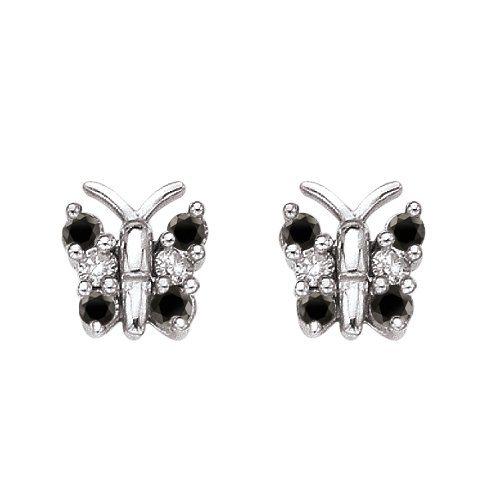 » 14K White Gold 1/4 ct. Black and White Diamond Butterfly Earrings