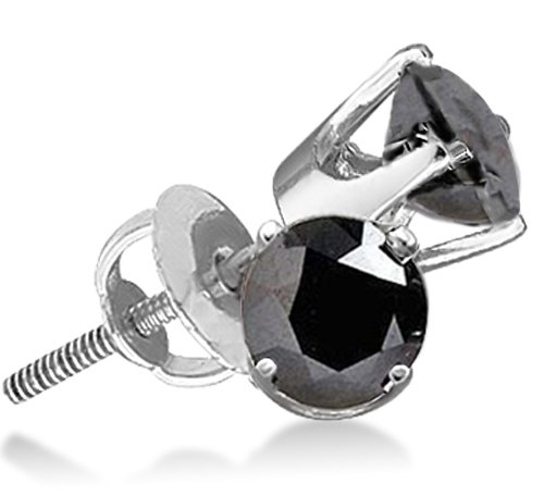 10K White Gold Prong Set Round Black Diamond Solitaire Stud Earrings with Screw Back Closure - (1/2 cttw)