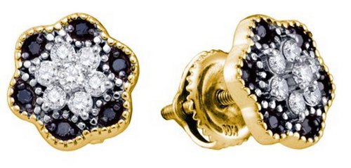 - 10K Yellow Gold 0.29CT Black Diamond Micro-Pave Ea...