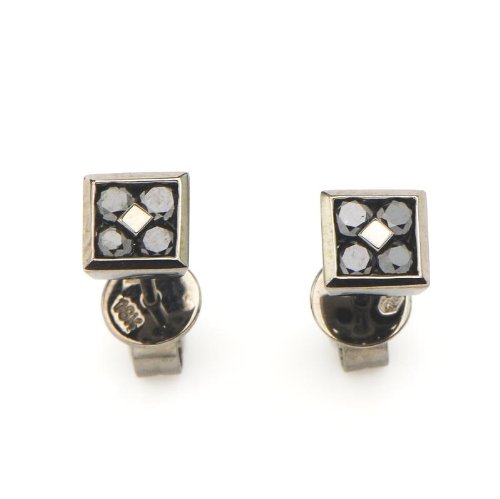 » 18K White Gold Oxidated Four Stones Black Diamond Square Stud Earrings (0.42 cttw)
