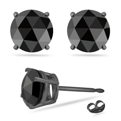 - 4.00 Cts 7.00-7.40 mm AA Round Black Diamond Stud ...