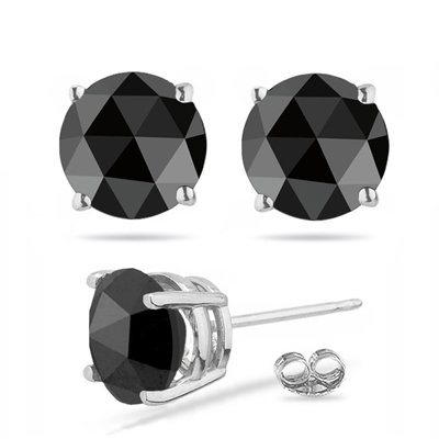 These classy stud earrings accent a round rose-cut Black Diamond solitaire each four prong set in 14K White Gold. Approximate Diamond Weight: 4.95 Carats. The earrings would be a perfect addition to your wardrobe. ,METAL:14K Gold,ACTUAL METAL:14K White Gold,RHODIUM:Yes,BACKING:Screw Backs,NUMBER OF DIAMONDS:2,SHAPE:Round Rose Cut,AVERAGE COLOR:Black,AVERAGE QUALITY:AAA,MINIMUM CARAT TOTAL WEIGHT:4.95,SETTING STYLE:Prong Setting,DIMENSIONS:7.50-8.00 mm,COLOR:Black,PRODUCT TYPE:Stud Earrings,GENDER:Womens,MATERIAL:Color Diamond {DIAMOND APPRAISAL INCLUDED}