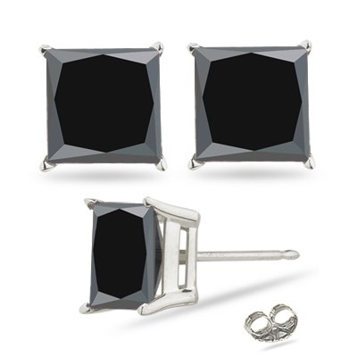 RECOMMENDED TODAY3.00cttw Natural Treated Princess Shape Black Diamond Stud Earrings in 14K White Gold. 3.00cttw Natural Treated Princess Sh...