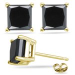 » 2.50 Cts of 5.50-6.20 mm AA Princess Black Diamond Stud Earrings in 14K Yellow Gold-Screw Backs