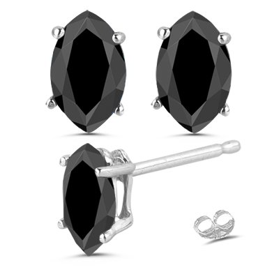» 1.00 Ct of 6.3x4.3 mm AA Marquise Black Diamond Stud Earrings in 14K White Gold