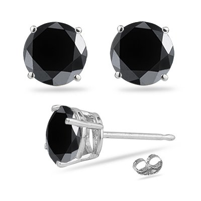 » 1.50 Cts Round A Black Diamond Stud Earrings in 14K White Gold