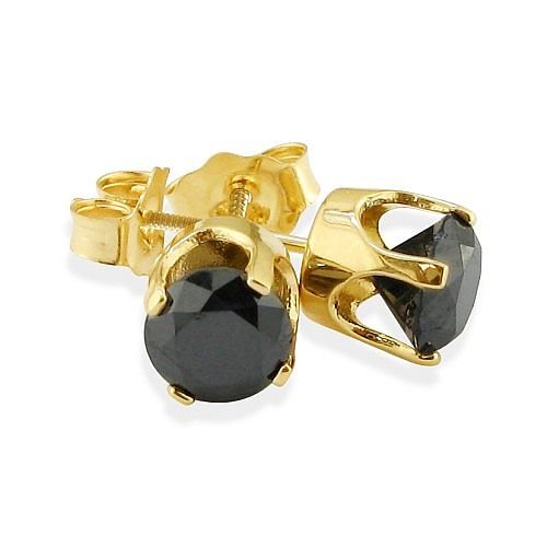 HOT PRODUCT TODAY3/4 (0.71-0.80) Cts of 3.50-4.00 mm AA Round Black Diamond Stud Earrings in 14K Yellow Gold 3/4 (0.71-0.80) Cts of 3.50-4.0...