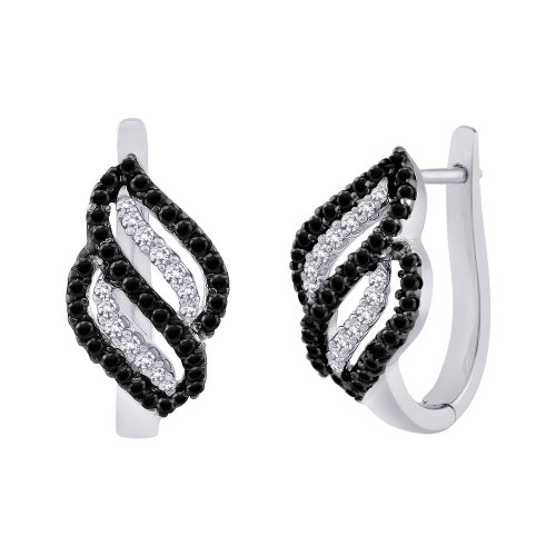 - Sterling Silver, Black and White Diamond Earrings ...