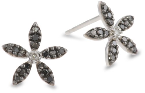SPECIAL PRICE10k White Gold Black Diamond Accent Flower Earrings