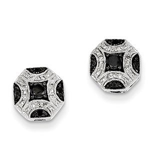14k White Gold White and Black Diamond Post Earrings - JewelryWeb