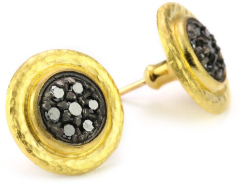 » GURHAN "Moonstruck" Black Diamond Pave Two-Tone Button Earrings