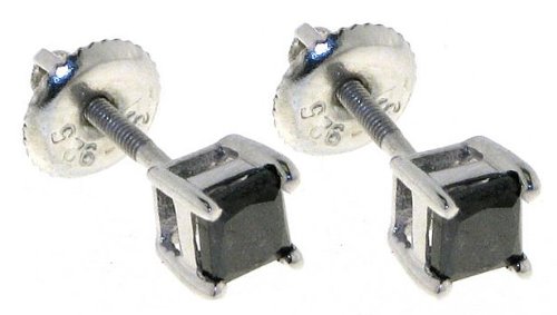 Modern 925 Sterling Silver Women Fancy Stud Earrings with Black Diamond 1.00 Carat - 5mm*5mm