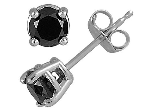 HOT OFFERSSolitaire Stud Black Diamond Earrings 1.0 Carat (ctw) in 10K White Gold Solitaire Stud Black Diamond Earrings 1.0 Carat (ctw) in 1...