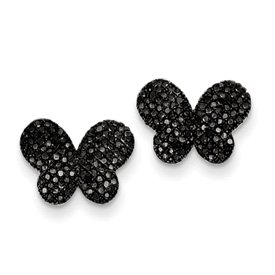 Sterling Silver Black Rough Diamond Butterfly Post Earrings - JewelryWeb