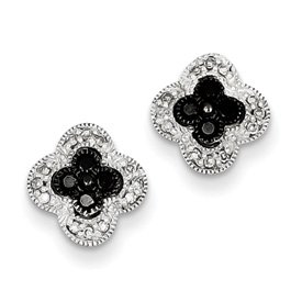 Sterling Silver Black Rough Diamond Small Flower Post Earrings - .25 Carat Diamond Weight in Sterling Silver - JewelryWeb Style: QTE254206SS - FREE gift-ready jewelry box