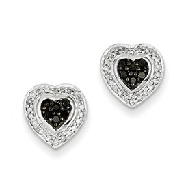 Sterling Silver Black Rough Diamond Small Heart Post Earrings - .33 Carat Diamond Weight in Sterling Silver - JewelryWeb Style: QTE253555SS - FREE gift-ready jewelry box