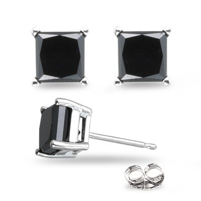 RECOMMENDED TODAY3.00cttw Natural Treated Princess Shape Black Diamond Stud Earrings in 14K White Gold. 3.00cttw Natural Treated Princess Sh...