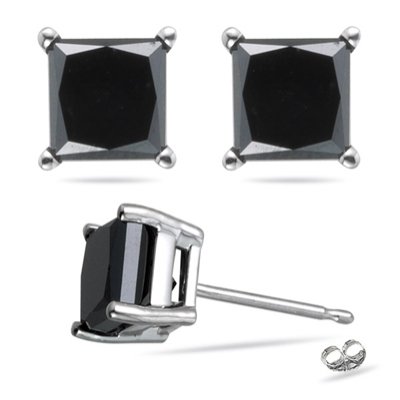 RECOMMENDED TODAY3.00cttw Natural Treated Princess Shape Black Diamond Stud Earrings in 14K White Gold. 3.00cttw Natural Treated Princess Sh...