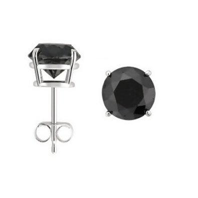 - 14K White Gold 1.50CT Black Diamond Round Studs