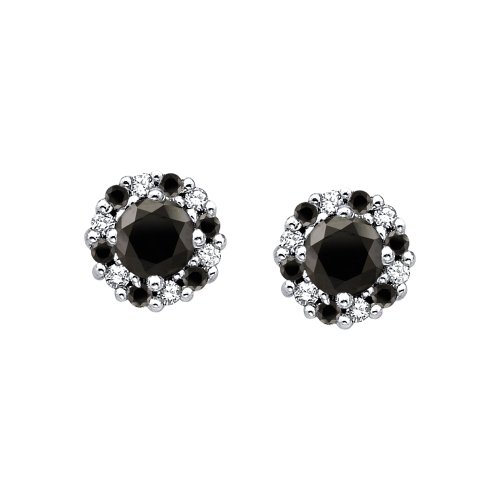- 10K White Gold 1/2 ct. Black and White Diamond Ear...