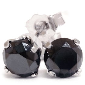This matching pair of studs features two large black diamonds. Both diamonds are set in solid white gold. 2.15ct total diamond weight.