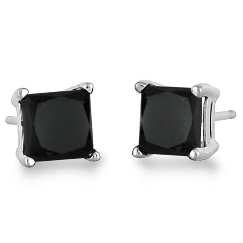 » Princess Cut Black Diamond Stud AAA Quality in 14k White Gold 1.00 ctw - Free Shipping